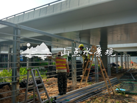 该工艺施工简单,1、制作竖向钢结构;2、制作横向次龙骨;3、悬挂模块产品;4、安装灌溉系统,调试滴灌;5、植物栽植;6、管养。